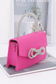 Add a touch of elegance and sparkle to your look with the Bow Handbag, a refined accessory designed to stand out. Crafted from smooth polyurethane and accented with rhinestone embellishments, this flap bag features a delicate ribbon-inspired handle that exudes feminine charm. The structured silhouette is compact yet practical, making it perfect for evening events, date nights, or anytime you want to make a polished impression. With its dazzling details and sophisticated design, the Bow Handbag blends playful glamour with timeless style.